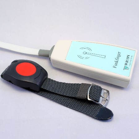 Des Weiteren kann in diesen Steckanschluss der Empfänger des schnurlosen Funktasters eingesteckt werden ( Funkfinger), um die Mobilität der Rufauslösung zu erweitern.