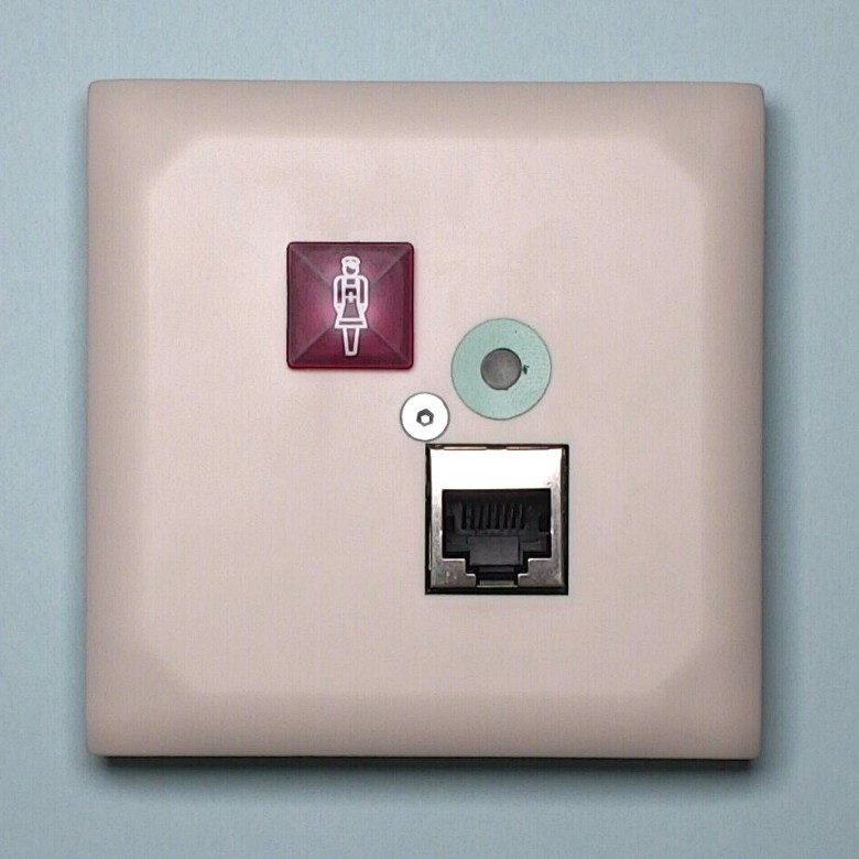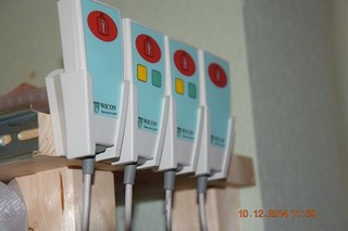 - zum Auslösen bzw. zum Abstellen von Notrufen und zur Anwesenheitsquittierung, sowie Steckanschluß für einen Birntaster mit RJ-45-Stecker zum Auslösen von Notrufen,