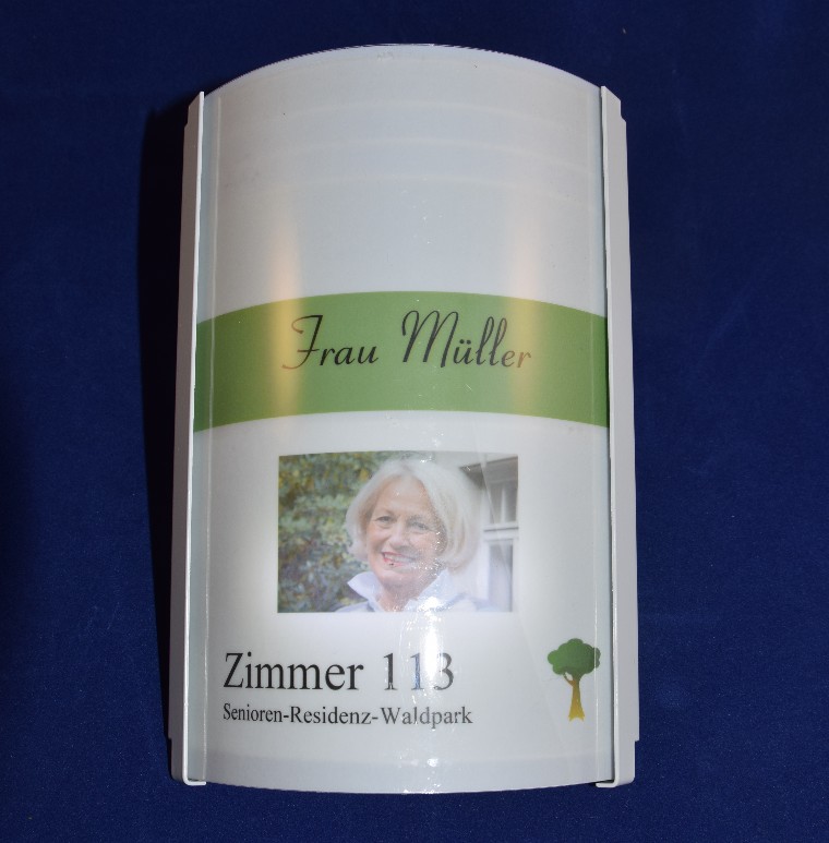 Namensschild beliebig auswechselbar.