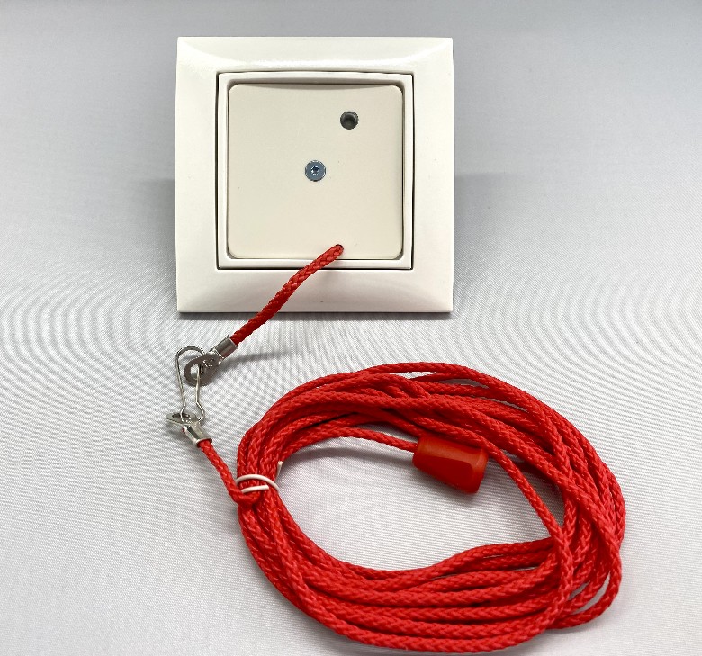 Zugtaster werden als Ruf-Auslöseeinrichtungen vorrangig in Bädern/WCs oder anderen sanitären Einrichtungen eingesetzt. Die Auslösung des Rufes erfolgt durch Ziehen an der roten Zugschnur. Mit Beruhigungslicht,