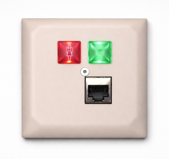- Steckanschluss (RJ45) für externe Rufmöglichkeiten