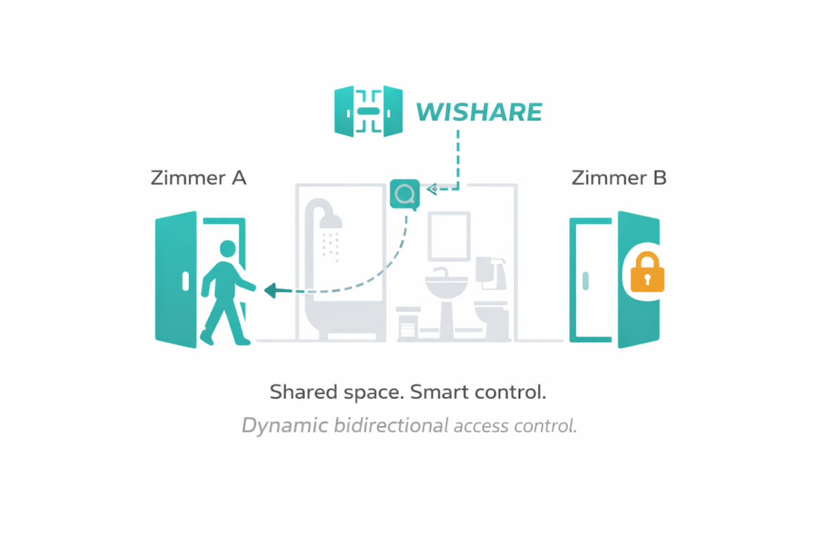 WISHARE löst ein klassisches Problem moderner Gebäude: geteilte Bäder mit zwei Zugängen.